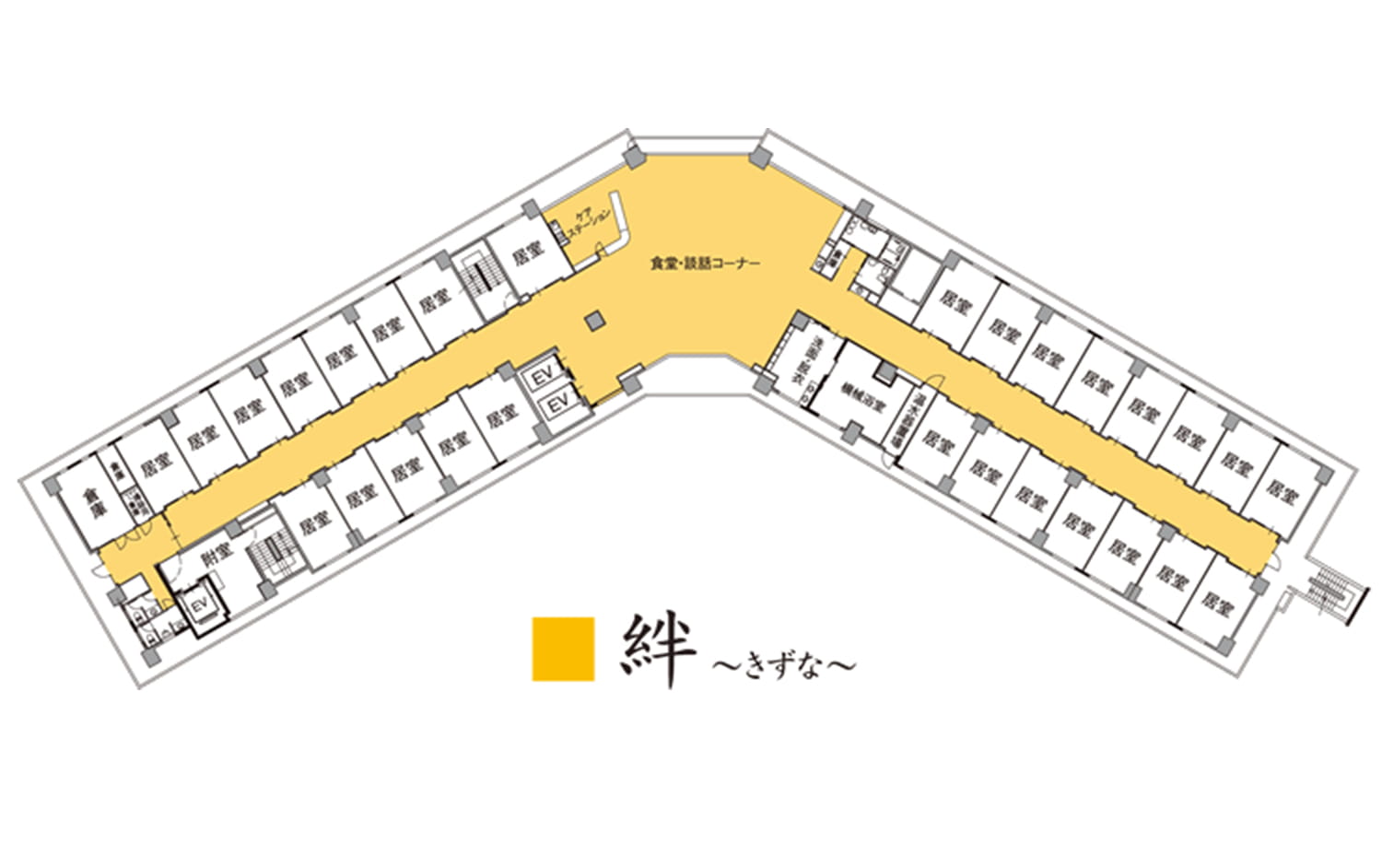 ※色が付いているフロアが特定施設入居者生活介護ケアハウス エクセル福山です。